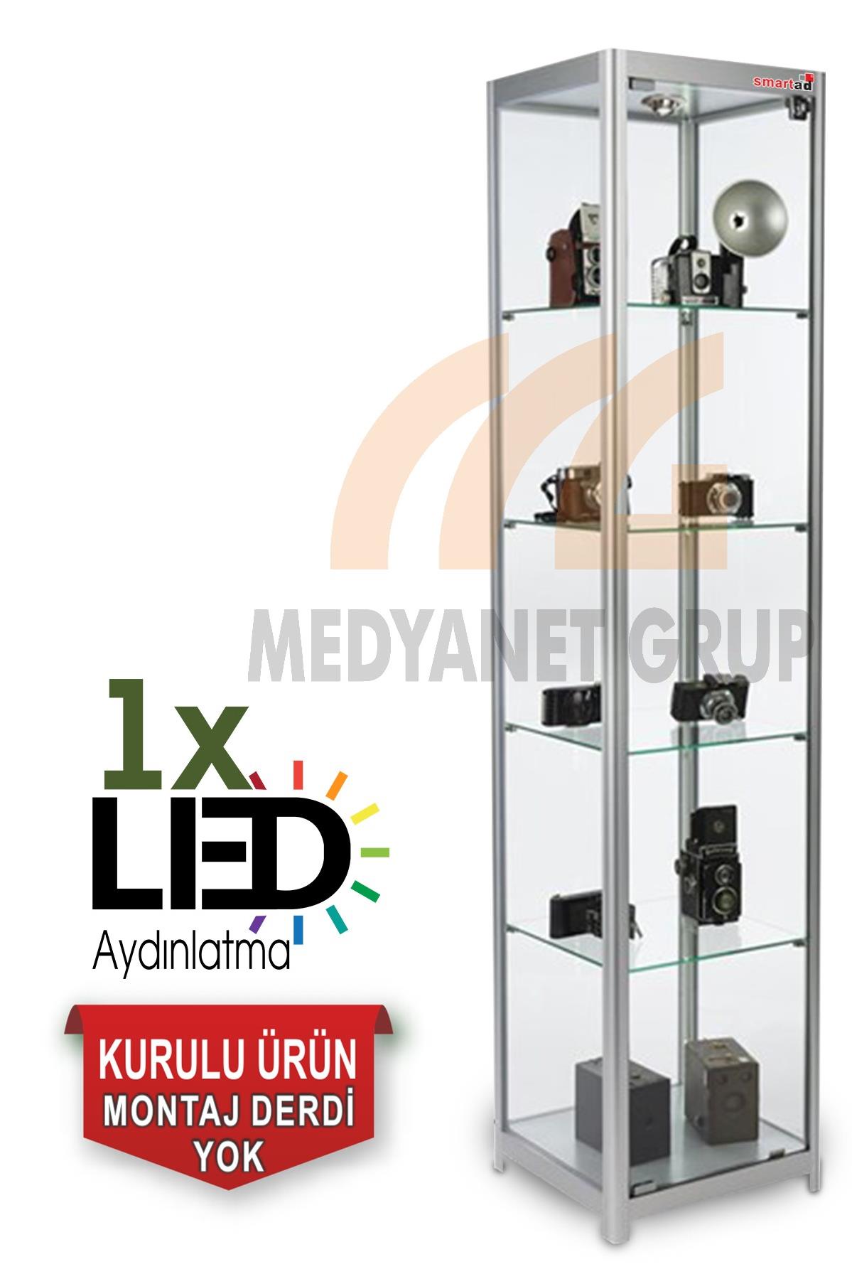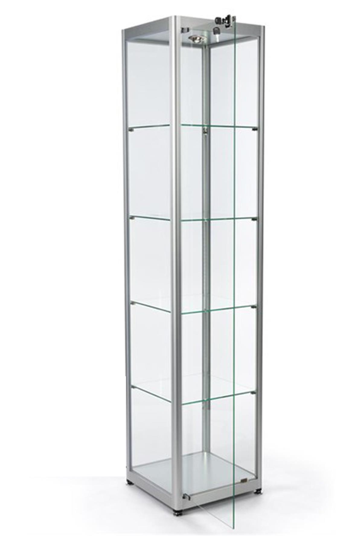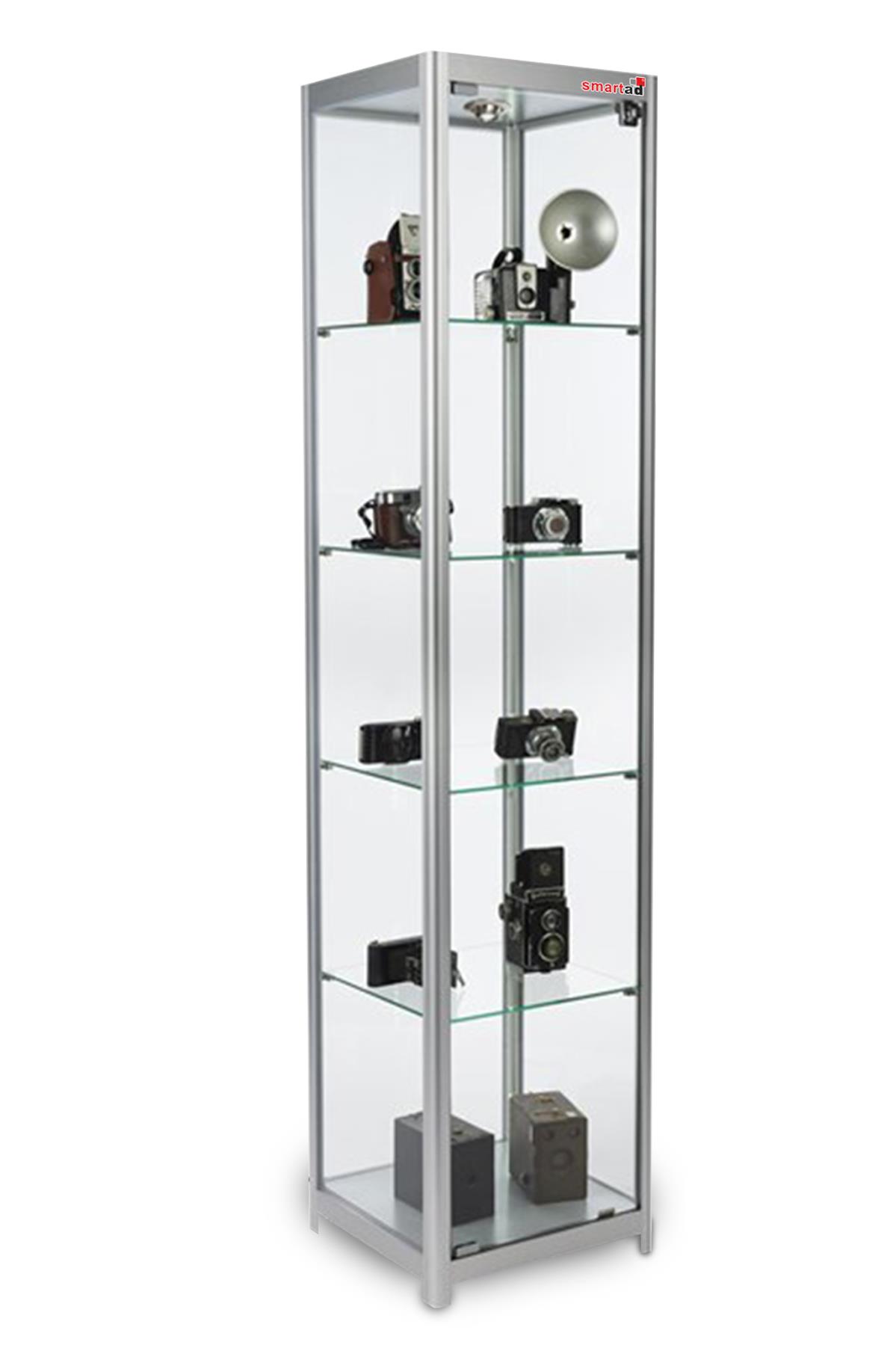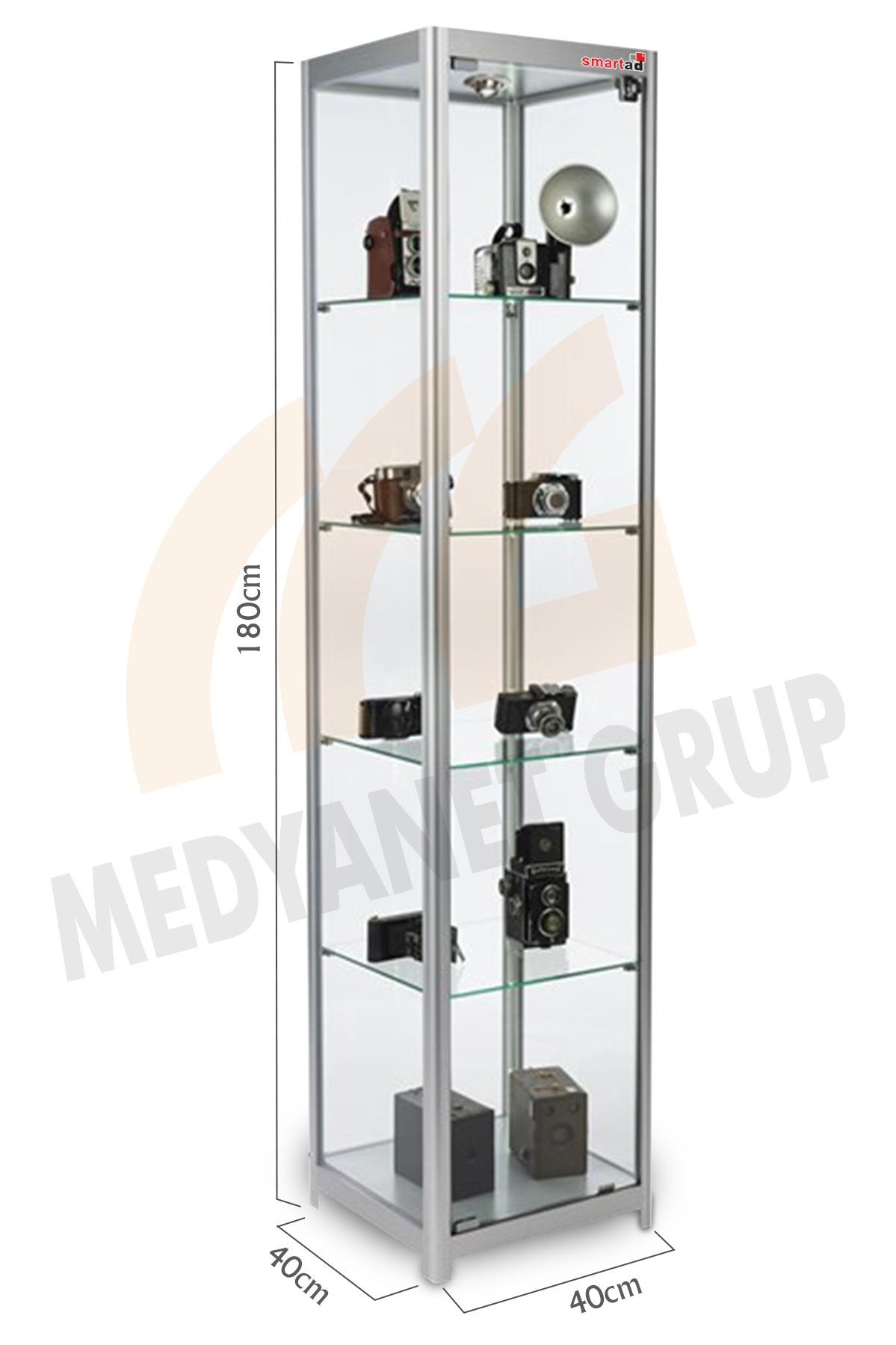 • Yükseklik:180cm, Genişlik:40cm , Derinlik:40cm • 4 Adet Raf • 1 Adet Spot • Alüminyum eloksal çerçeve • Yekpare cam • Mıknatıslı ve kilitli cam kapak • Ayarlanabilir raf yüksekliği Kullanıma Hazır veya Demonte Teslim